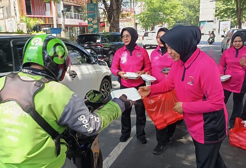 Aksi sosial berbagi nasi kotak rutin dilaksanakan setiap hari Jumat sembari memberikan himbauan tentang kamtibmas kepada pengguna jalan.