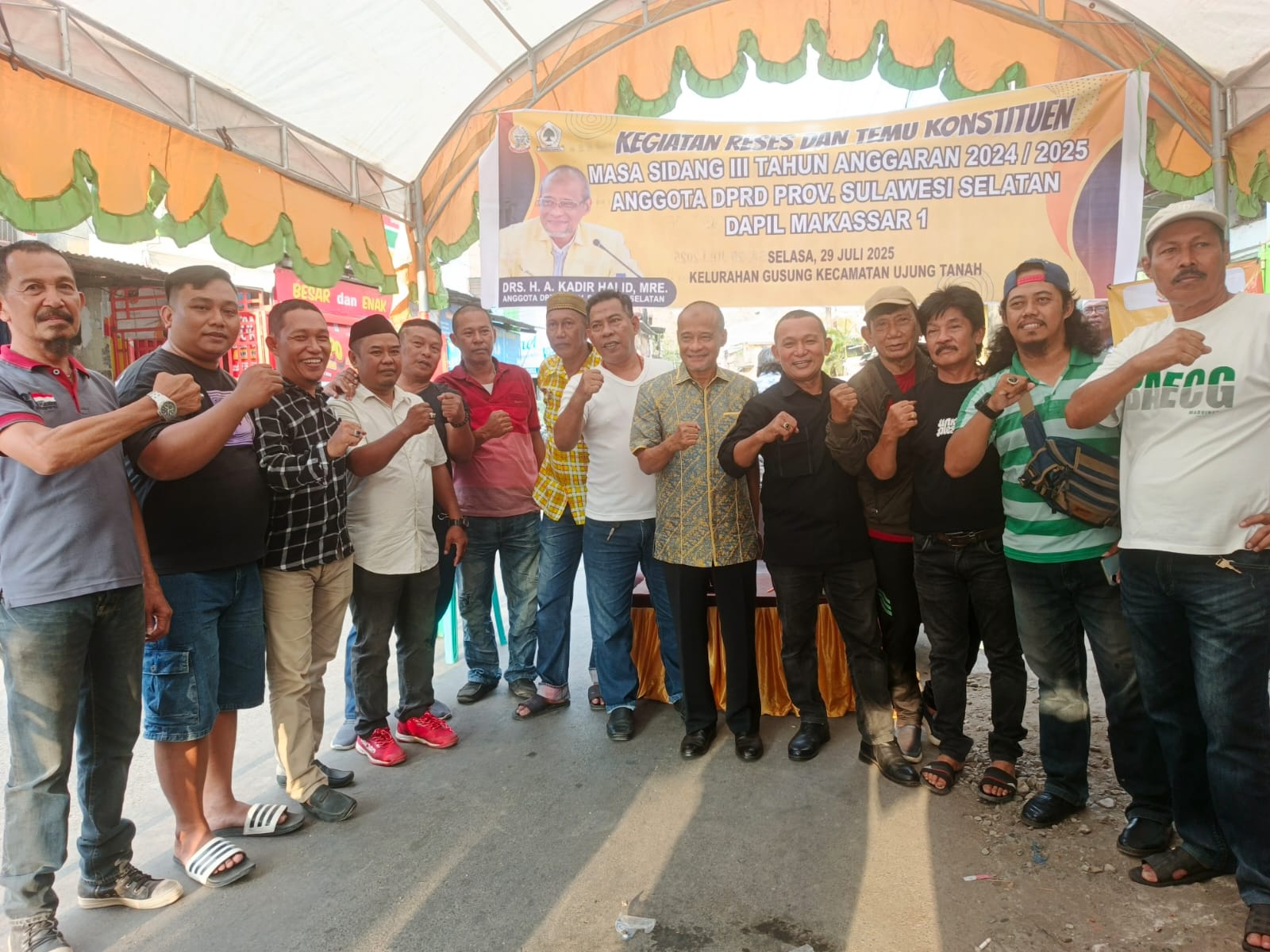 Makassar, 29 Juli 2025 — Anggota DPRD Provinsi Sulawesi Selatan dari Daerah Pemilihan (Dapil) Makassar 1, H.A. Kadir Halid, MRE., menggelar kegiatan reses dan temu konstituen dalam rangka Masa Sidang III Tahun Anggaran 2024/2025. Kegiatan ini berlangsung di Kelurahan Gusung, Kecamatan Ujung Tanah, Kota Makassar, pada Selasa (29/7).