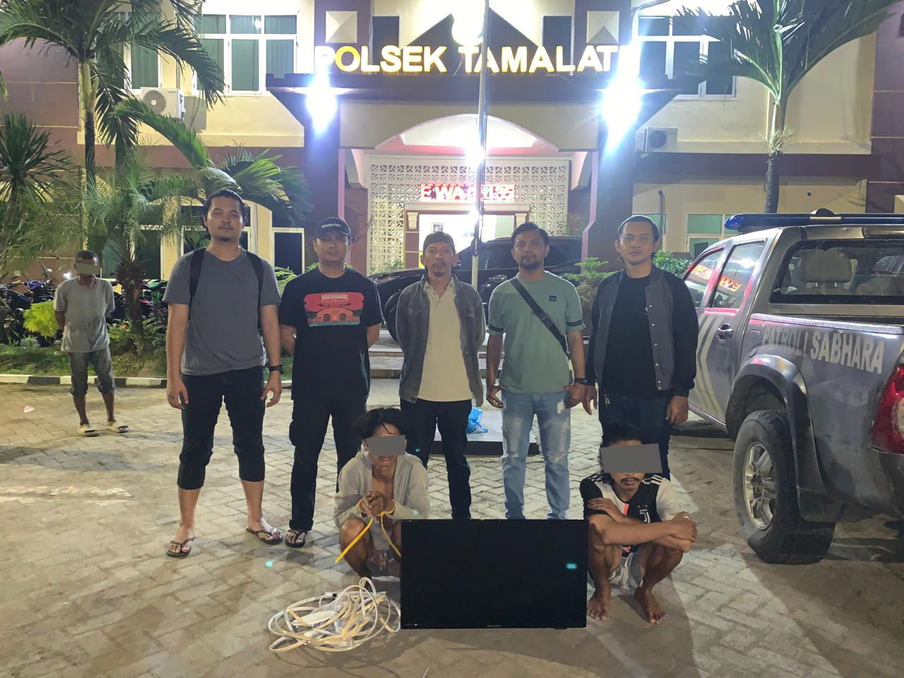 Dari hasil penyelidikan, polisi berhasil mengidentifikasi para terduga pelaku dan melakukan penangkapan beserta barang bukti. Adapun barang bukti yang diamankan antara lain satu gulungan kabel lampu LED sepanjang 12 meter, satu buah lampu LED, satu unit televisi merek Polytron, serta rekaman CCTV saat pelaku beraksi.