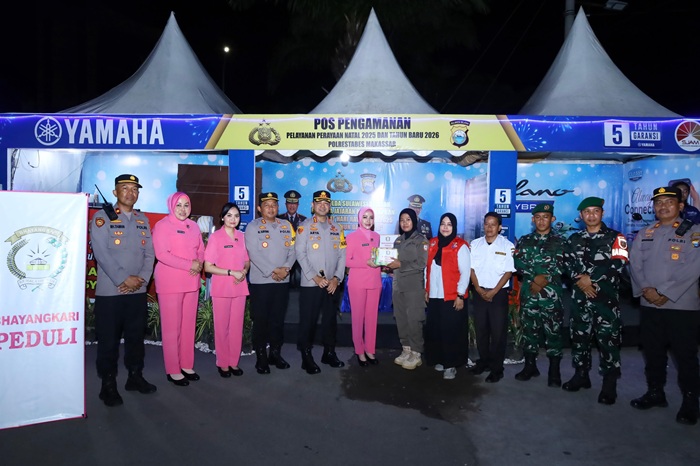Makassar – Sebagai wujud kepedulian terhadap personel yang melaksanakan tugas pengamanan Natal 2025 dan Tahun Baru 2026 (Nataru), Bhayangkari Cabang Tabes Makassar melaksanakan kunjungan ke Pos Pengamanan (Pospam) jajaran Polrestabes Makassar.