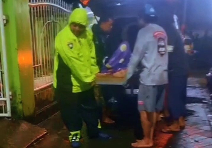 Makassar — Kepedulian terhadap warga terdampak banjir kembali ditunjukkan personel kepolisian. Bhabinkamtibmas Polsek Manggala, Aiptu Alfaisal, S.Sos., mengevakuasi seorang warga binaannya yang sakit di tengah banjir yang melanda wilayah Kelurahan Manggala, Jumat (27/2/2026) malam.