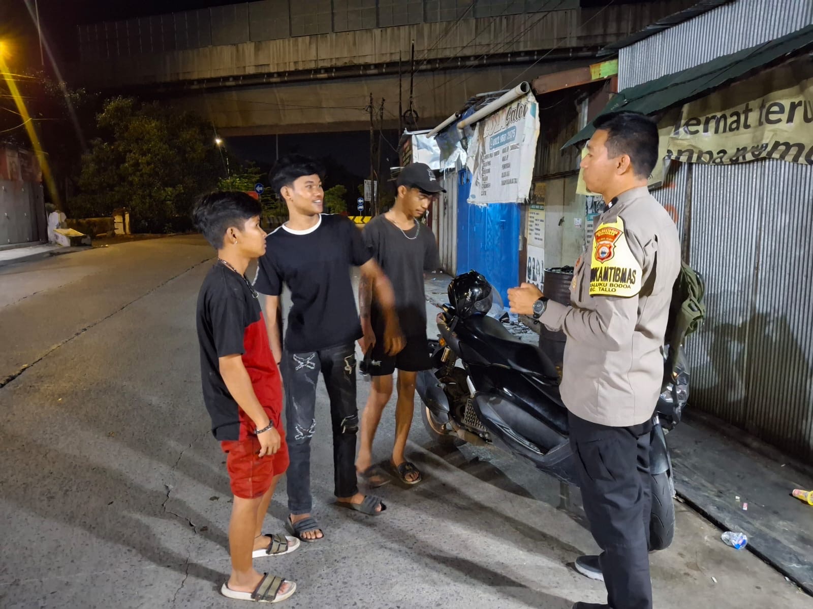 Makassar, TribunSulsel.com – Aipda Rolis Abdillah, Bhabinkamtibmas Polsek Tallo untuk Kelurahan Kaluku Bodoa, aktif menyampaikan pesan-pesan kamtibmas kepada remaja yang ditemuinya selama patroli pantau wilayah. Kegiatan ini dilakukan di Jalan Teuku Umar, Kelurahan Kaluku Bodoa, Kecamatan Tallo, Kota Makassar, pada Kamis (26/3/2026) sekitar pukul 02.00 WITA.