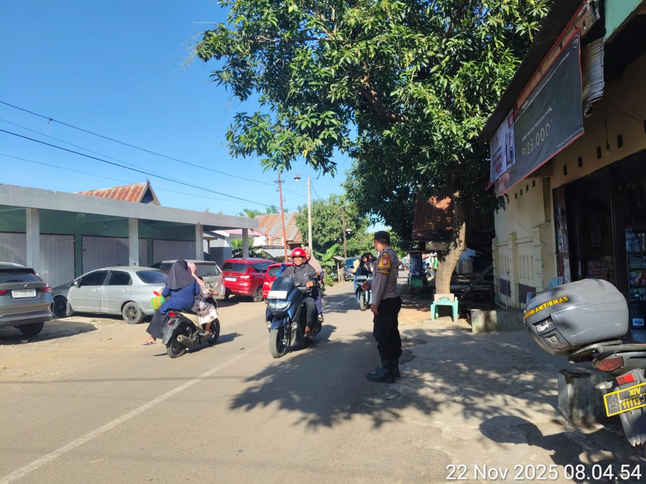 JENEPONTO – Guna mengantisipasi kemacetan dan menjaga keamanan serta ketertiban masyarakat (Kamtibmas), Bhabinkamtibmas Kelurahan Tolo Kota dan Tolo Barat, Aipda M. Arif, melaksanakan Pengaturan Lalu Lintas (PAM Lalin) di kawasan Pasar Tolo, Sabtu (22 November 2025) pagi.