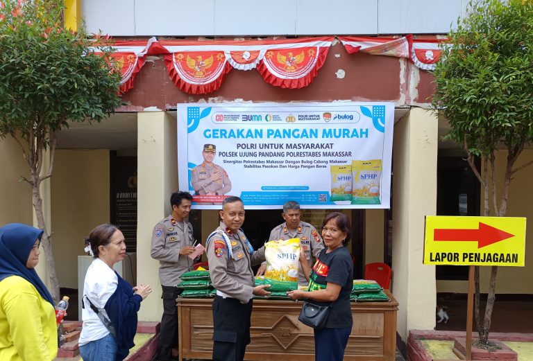 Makassar – Polsek Ujung pandang Polrestabes Makassar bersinergi dengan Bulog, BPN & BUMN menggelar kegiatan Gerakan Pangan Murah dalam rangka stabilisasi pasokan dan harga pangan.