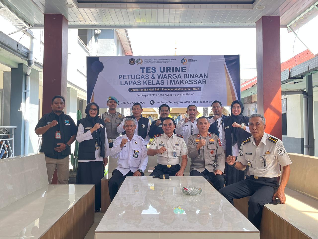 Kegiatan tersebut digelar dalam rangka peringatan Hari Bakti Pemasyarakatan ke-62 sebagai bentuk dukungan terhadap upaya deteksi dini serta pencegahan penyalahgunaan narkoba di lingkungan lembaga pemasyarakatan.