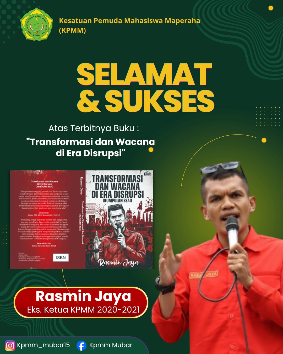 Kendari, lensa-rakyat.com || Kesatuan Pemuda Mahasiswa Maperaha (KPMM) Muna Barat mengapresiasi terobosan dan karya Eks Ketua KPMM periode 2020-2021 Rasmin Jaya yang berjudul “Transformasi dan Wacana di Era Distrupsi”.