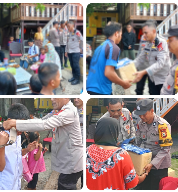 Jeneponto – Kapolres Jeneponto, AKBP Widi Setiawan, S.I.K., M.I.K., bersama jajaran melaksanakan kunjungan sekaligus memberikan bantuan berupa bahan makanan, pakaian dan peralatan sekolah kepada korban musibah kebakaran di Dusun Junggea, Desa Maccini Baji, Kecamatan Batang, Kabupaten Jeneponto, pada Senin (15/9/2025) sekitar pukul 15.30 WITA.