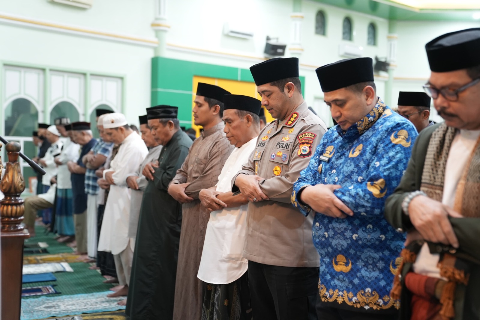 Makassar- Kapolrestabes Makassar Kombes Pol Arya Perdana, SH, SIK, M.Si menghadiri kegiatan safari Ramadhan 1446 bersama jajaran forkopimda Kota Makassar di Masid Al – Haq Jalan Abd. Dg Sirua, Komp Cv Dewi Blok F1 No 44 Kota Makassar. Senin (17/03/2025).