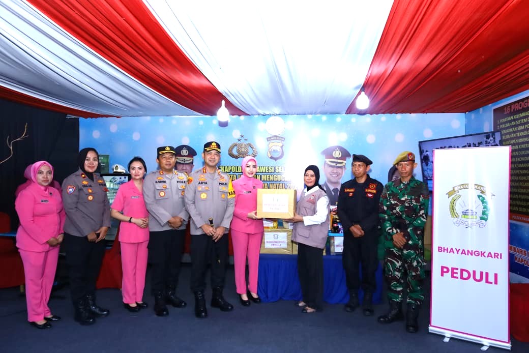 Makassar – Kapolrestabes Makassar Kombes Pol Arya Perdana, S.H., S.I.K., M.Si bersama Ketua Bhayangkari Cabang Tabes Makassar Ny. Emma Arya Perdana, didampingi Para PJU serta pengurus Bhayangkari, mengunjungi Pos Pelayanan (Yan), Operasi Lilin 2025, Selasa (30/12/2025).
