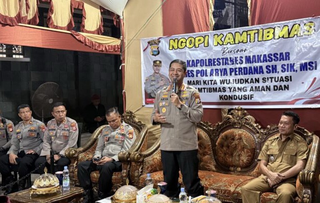 Makassar, 13 April 2026 – Suasana hangat malam Senin (13/4/2026) di rumah H. Andika, Jalan Poros Kandea III, Kelurahan Bunga Eja Beru, Kecamatan Tallo, Kota Makassar, berubah menjadi wadah dialog masyarakat dan polisi. Kapolrestabes Makassar, Kombes Pol Arya Perdana, S.I.K., M.Si., memimpin giat “Ngopi Kamtibmas” pukul 20.23 WITA. Acara ini menjadi ajang langsung bagi warga menyampaikan keluhan keamanan dan ketertiban masyarakat (Kamtibmas) kepada aparat.