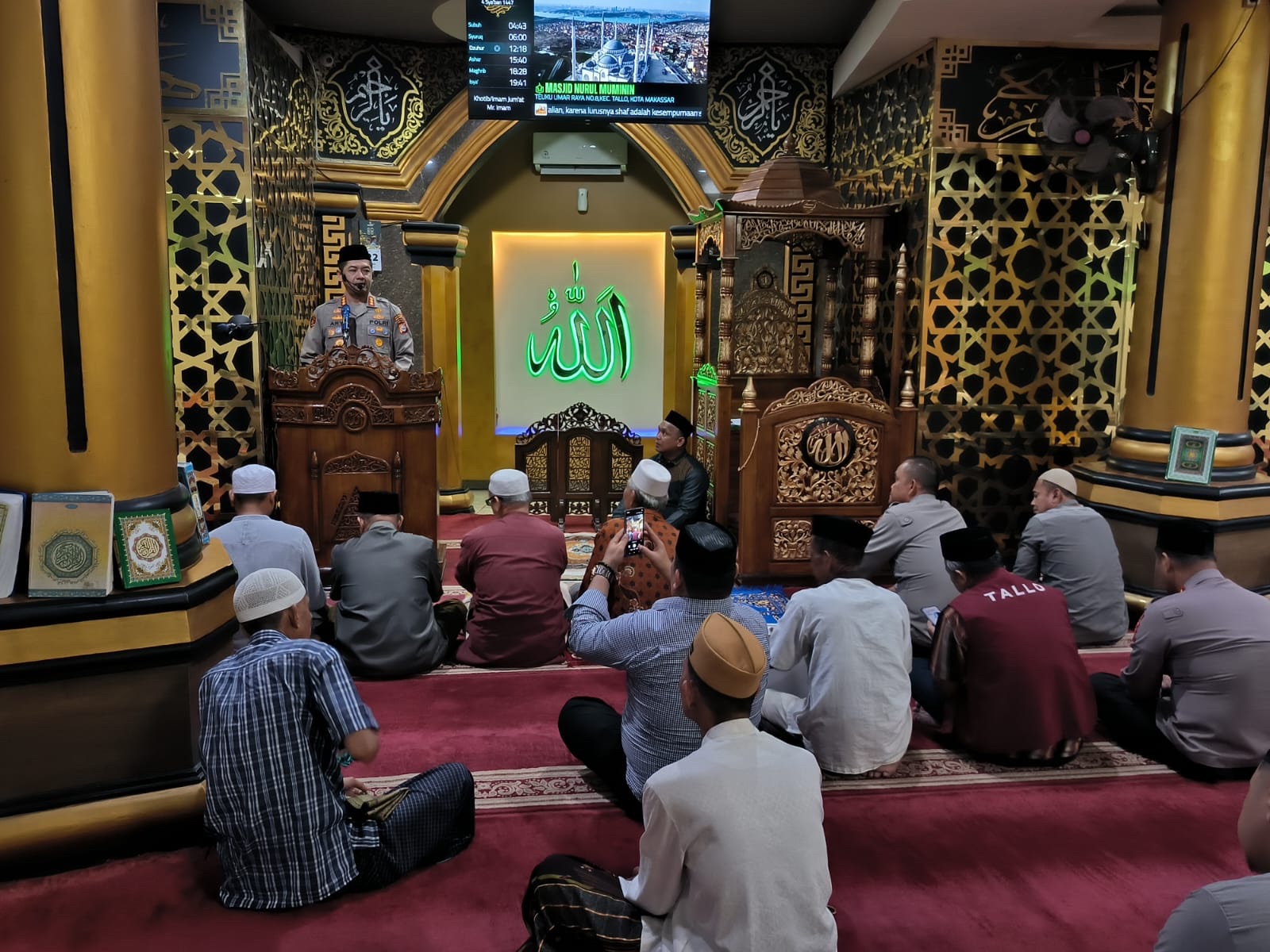 Makassar, 23 Januari 2026 – Dalam upaya mempererat silaturahmi antara aparat kepolisian dan masyarakat, Kapolrestabes Kota Makassar Kombes Pol Arya Perdana, SH, S.IK, M.Si melaksanakan kegiatan Safari Sholat Subuh di Masjid Nurul Mu’minin, Jalan Teuku Umar Raya No. 8, Kelurahan Suangga, Kecamatan Tallo, Kota Makassar. Kegiatan ini berlangsung pada Jumat (23/1) sekitar pukul 04.45 WITA dan diikuti oleh sekitar 50 jemaah yang antusias hadir.