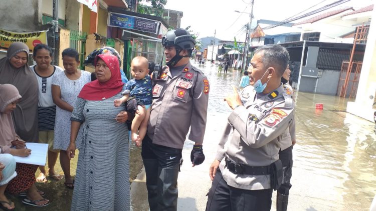 Ditempat pengungsian, Kapolsek menyapa warga dan menyampaikan untuk bersabar dalam menghadapi musibah ini dan berharap banjir bisa segera surut.