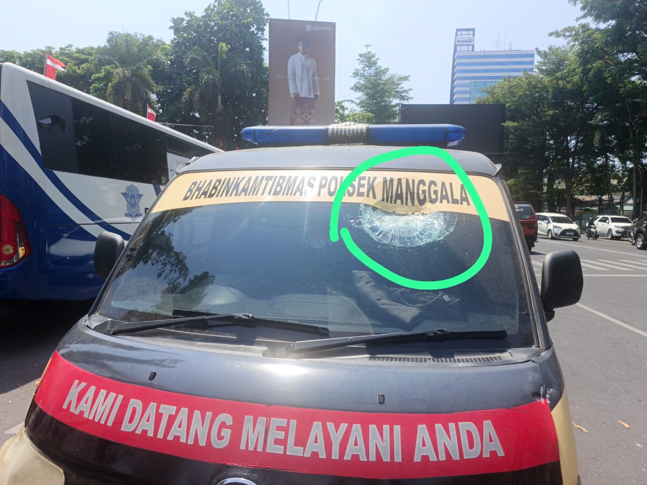 Saat melintas di kawasan tersebut, massa kembali melakukan aksi pelemparan batu ke arah mobil dinas Polsek Manggala yang sedang mengantar tahanan. Mobil pelayanan SIM pun turut menjadi sasaran, di mana kaca bagian belakangnya pecah akibat lemparan batu. Selain itu, kaca depan mobil Polsek Manggala juga rusak.