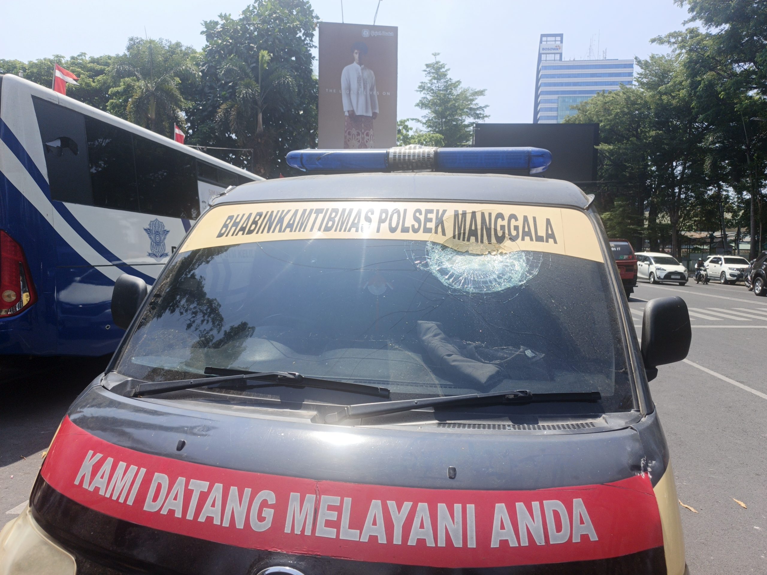 Salah satu kendaraan yang menjadi sasaran utama adalah mobil dinas milik Binmas Polsek Manggala. Akibat lemparan batu, kaca mobil pecah dan bodi kendaraan mengalami kerusakan cukup parah. Tidak berhenti di situ, sebuah mobil pelayanan SIM yang tengah terparkir di depan area Monumen Mandala juga turut menjadi sasaran. Beberapa bagian mobil tersebut mengalami keretakan dan penyok akibat amukan massa.