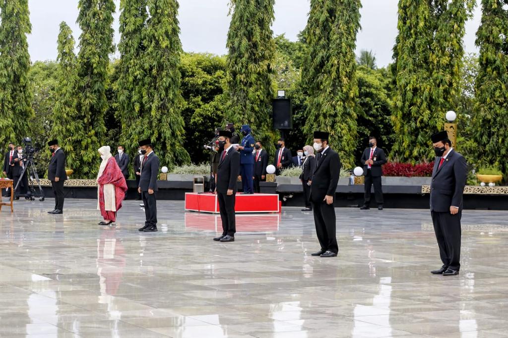 Turut hadir dalam acara yang dilaksanakan dengan menerapakan protocol Kesehatan yang ketat ini yaitu, Wakil Presiden K.H. Ma’ruf Amin, Ketua Mahkamah Konstitusi, jajaran Menteri Kabinet Indonesia Maju, dan lainnya.