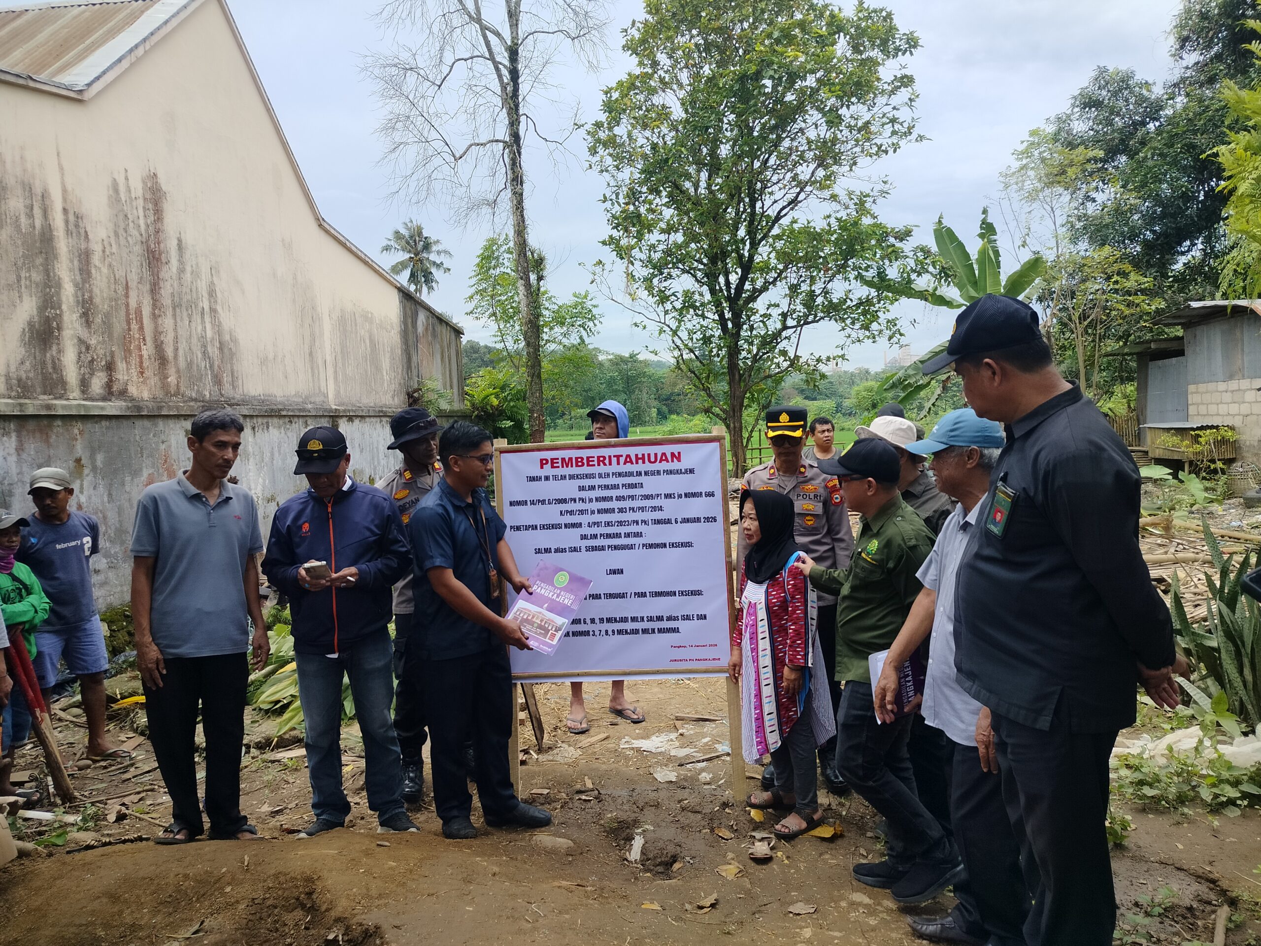 Pelaksanaan eksekusi ini merupakan tindak lanjut dari Penetapan Ketua Pengadilan Negeri Pangkep atas putusan perkara perdata tertanggal 7 November 2022 Nomor: 14/Pdt.G/2008/PN Pkj, antara pihak Pemohon Salma alias Isale dan pihak Termohon Mamma dkk. Sejak awal kegiatan, Firman, S.H hadir mendampingi kliennya guna memastikan seluruh tahapan eksekusi berjalan sesuai dengan ketentuan hukum yang berlaku serta tetap menjaga situasi kondusif di tengah masyarakat.