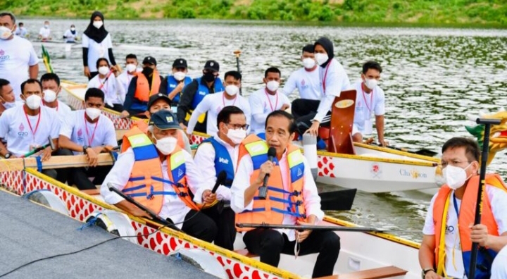 Lensa-Rakyat,Com, Kolaka Timur – Presiden Joko Widodo meresmikan Bendungan Ladongi di Kabupaten Kolaka Timur, Provinsi Sulawesi Tenggara, pada Selasa, 28 Desember 2021. Berbeda dari biasanya, kali ini Presiden Jokowi menyampaikan pernyataan peresmian sambil menumpangi perahu naga di bendungan tersebut.