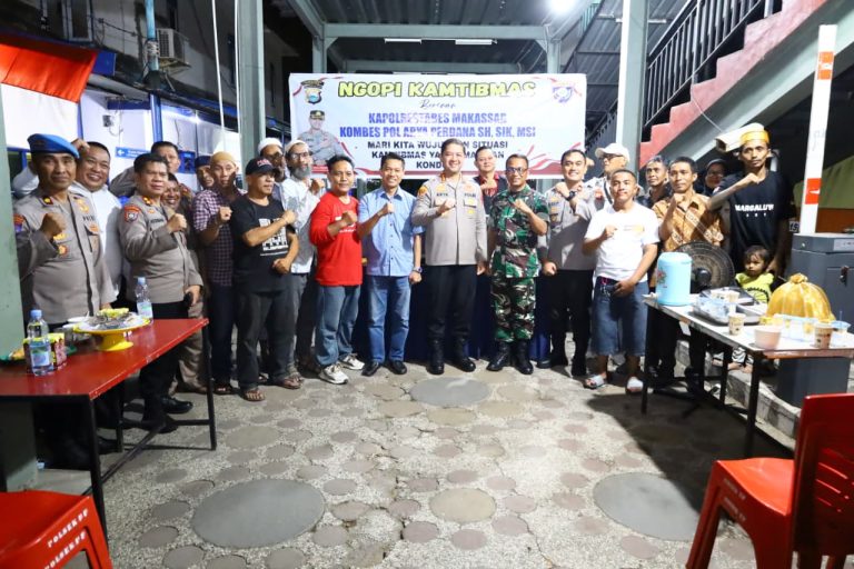 Makassar- Kapolrestabes Makassar Kombes Pol Arya Perdana SH, SIK, M.Si menggelar kegiatan Ngopi Kamtibmas di di pelataran parkir Kanrerong Jl. RA. Kartini Kel. Baru Kec. Ujung Pandang Kota Makassar, Jumat (08/08/2025) pukul 20.00 Wita.