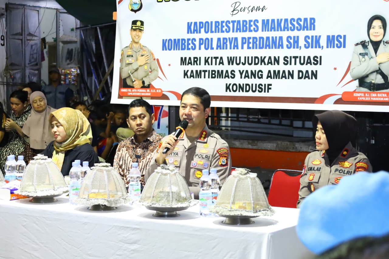 Makassar – Kapolrestabes Makassar, Kombes Pol Arya Perdana, SH, SIK, M.Si, menggelar kegiatan Ngopi Kamtibmas bersama warga Kelurahan Karuwisi Utara, Kecamatan Panakkukang, Kota Makassar, Jumat malam (03/10/2025).