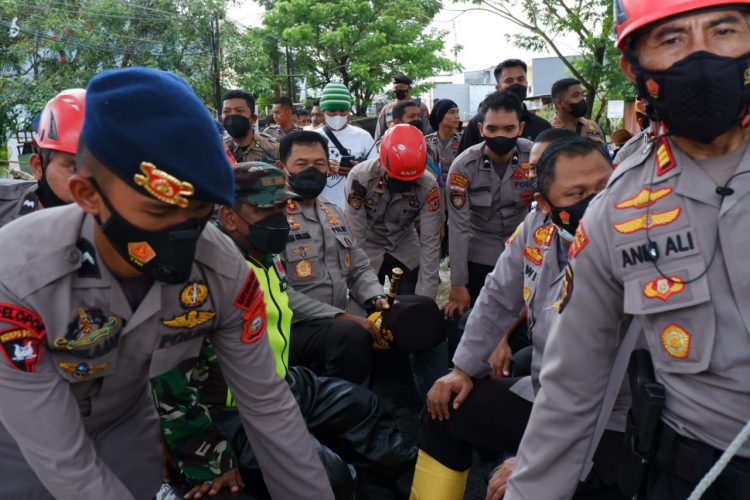 Kapolda pun langsung memberikan bantuan 200 Nasi dos, sembako dan Masker kepada para pengungsi yang berada di Mesjid Grand Rahmani Residence.