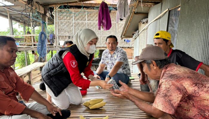 Tim Dokkes tidak hanya melakukan pemeriksaan kesehatan gratis bagi seluruh anggota keluarga, tetapi juga memberikan bantuan paket sembako dan alas tidur berupa kasur.