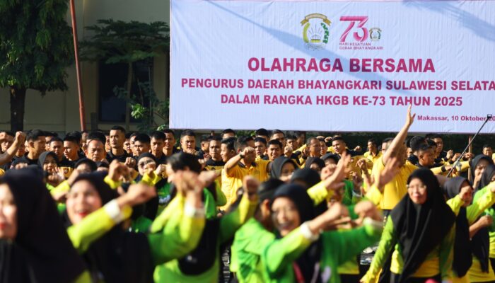 Dalam rangka memperingati Hari Kesatuan Gerak Bhayangkari (HKGB) ke-73 Tahun 2025, Bhayangkari Daerah Sulawesi Selatan bersama Bhayangkari Cabang menggelar kegiatan olahraga bersama yang berlangsung di Lapangan Apel Belakang Mapolda Sulsel, Jumat (10/10/25).
