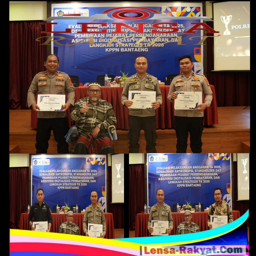 Lensa rakyat com Jeneponto, 6 Februari 2026 – Dalam forum evaluasi dan koordinasi yang digelar oleh Kantor Pelayanan Perbendaharaan Negara (KPPN) Bantaeng, Polres Jeneponto berhasil menyabet tiga penghargaan sekaligus. Penghargaan tersebut diterima oleh Aiptu Suparman perwakilan Polres Jeneponto yang hadir dalam kegiatan bertajuk “Evaluasi Pelaksanaan Anggaran TA. 2025, Sosialisasi Anti Korupsi, Stakeholder Day, Asistensi Digitalisasi Pembayaran, dan Langkah Strategis TA 2026” di Hotel Kirei Bantaeng, Kamis (5/2/2026) lalu.