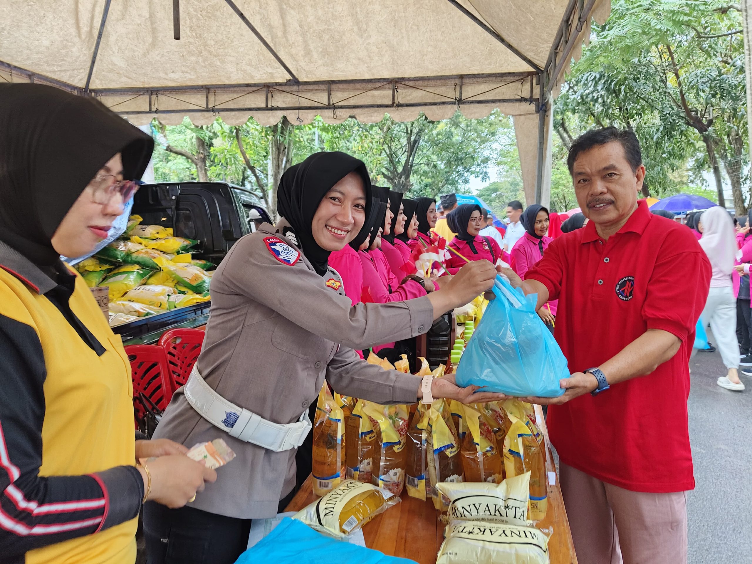 Antusiasme masyarakat terlihat sejak pagi. Sebelum bazar dibuka, acara diawali dengan gerak jalan santai yang diikuti ratusan warga. Hanya dalam waktu kurang dari dua jam, seluruh stok sembako ludes terjual. Kepadatan pengunjung membuat petugas, termasuk Polwan dan Ibu Bhayangkari yang menjaga stan penjualan, harus bekerja ekstra melayani pembeli.