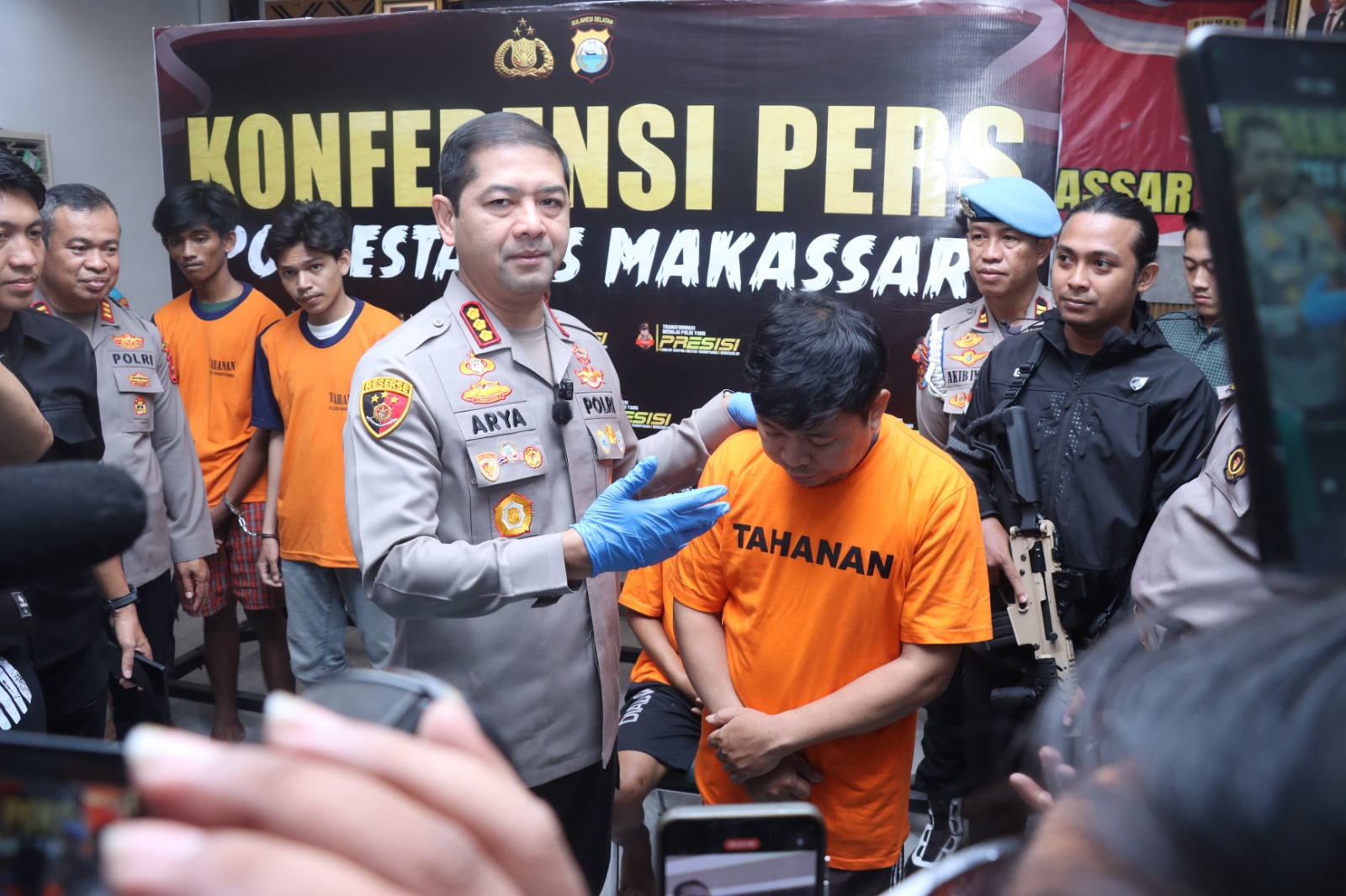 Dalam konferensi pers yang digelar di Aula Mappaoddang Polrestabes Makassar pada Selasa (6/5/2025), Kapolrestabes Makassar Kombes Pol Arya Perdana, S.I.K., M.Si., didampingi Kasat Reskrim AKBP Devi Sujana, S.I.K., M.H., serta Kasi Humas AKP Wahiduddin, mengungkapkan