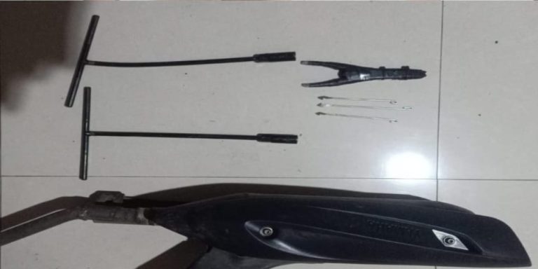 “Lelaki A beserta penadah barang curian telah kami amankan bersama barang bukti berupa dua buah kunci T, satu buah knalpot merek Yamaha, satu buah ketapel, serta tiga buah anak busur,” ujar Iptu Syuryadi.