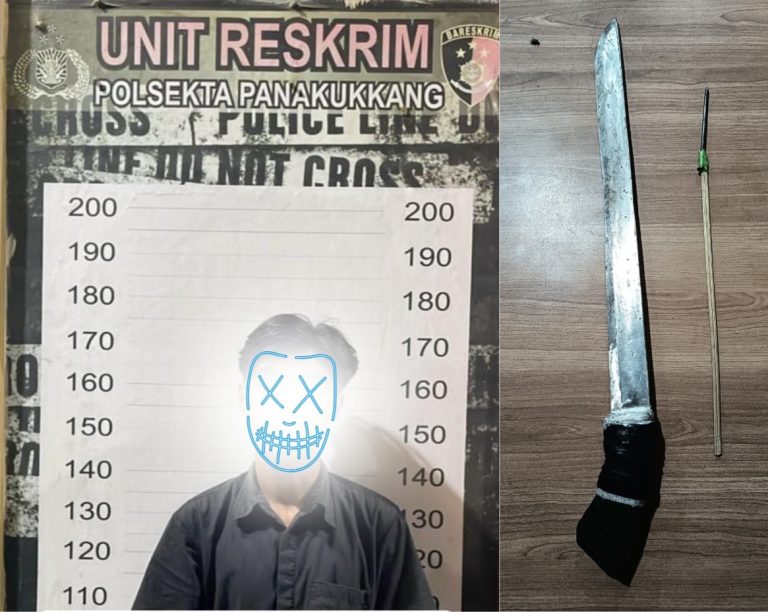MAKASSAR — Kepolisian Sektor Panakkukang berhasil mengungkap kasus tindak pidana pengancaman yang terjadi di wilayah hukumnya pada Rabu (11/06/2025). Seorang pria berinisial ME (21) diamankan bersama barang bukti berupa satu bilah parang dan satu buah anak panah jenis busur yang diduga digunakan dalam aksi pengancaman tersebut.
