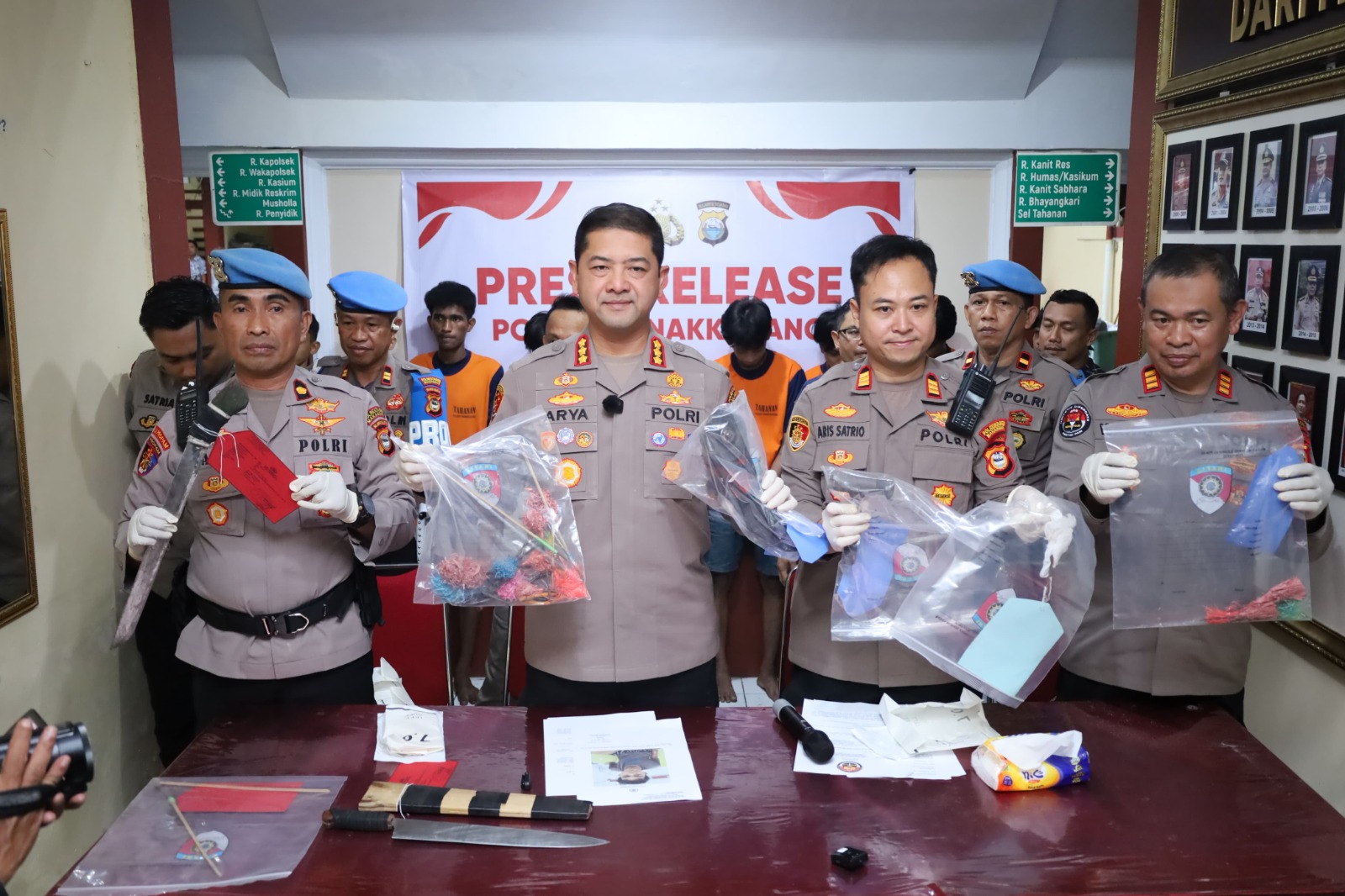 Dalam konferensi pers yang digelar pada Jumat sore (4/7/2025) di Polsek Panakkukang, Kapolrestabes Makassar Kombes Pol Arya Perdana, S.I.K., M.Si. didampingi Kasi Propam Kompol Ramli, Kapolsek Panakkukang AKP Aris Satroi Sujatmiko, S.I.K., M.H., dan Kasi Humas Polrestabes Makassar AKP Wahiduddin memaparkan kronologi penangkapan.