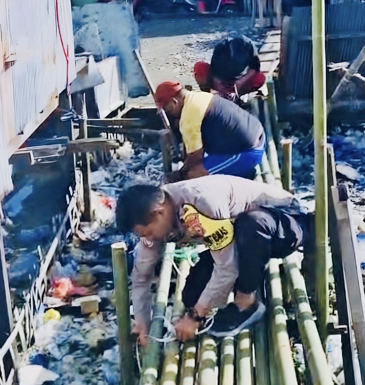 Kegiatan yang berlangsung pada Senin (19/1) siang itu melibatkan personel polisi dan warga setempat. Jembatan bambu lama yang rusak parah sering menjadi keluhan warga karena rawan ambruk dan menyulitkan aktivitas sehari-hari, seperti beraktivitas ke pasar, sekolah, atau tempat kerja. Dengan semangat kebersamaan, tim langsung membongkar struktur lama dan menggantinya dengan bambu baru yang lebih kokoh dan tahan lama.