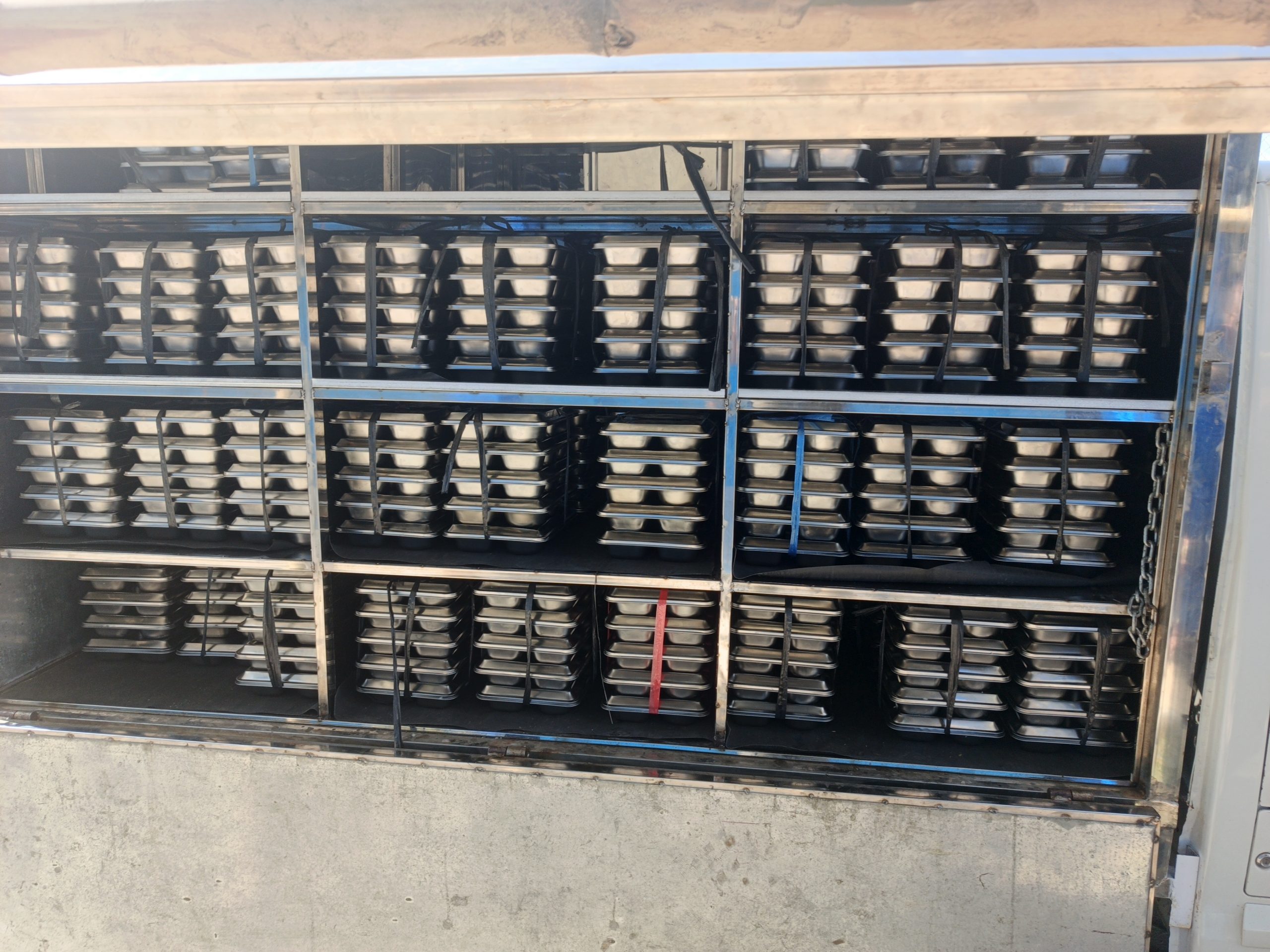 Makanan dikemas dalam kotak stainless yang higienis dan dibagikan langsung ke tiap kelas. Setiap kelas mendapatkan jatah sesuai jumlah siswa aktif, dengan sistem pencatatan manual yang rapi—mencatat jumlah paket yang “diambil” dan “dikembalikan”—untuk memastikan akurasi distribusi.