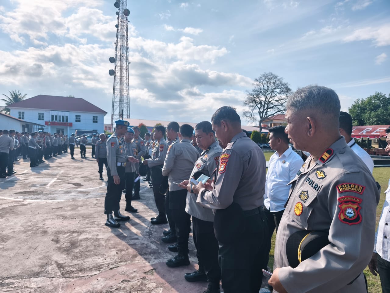Turut hadir dalam kegiatan ini, Wakapolres Jeneponto Kompol Sahabuddin, S.E., M.A.P., para Pejabat Utama (PJU) Polres Jeneponto, serta seluruh Kapolsek dari jajaran Polres Jeneponto.
