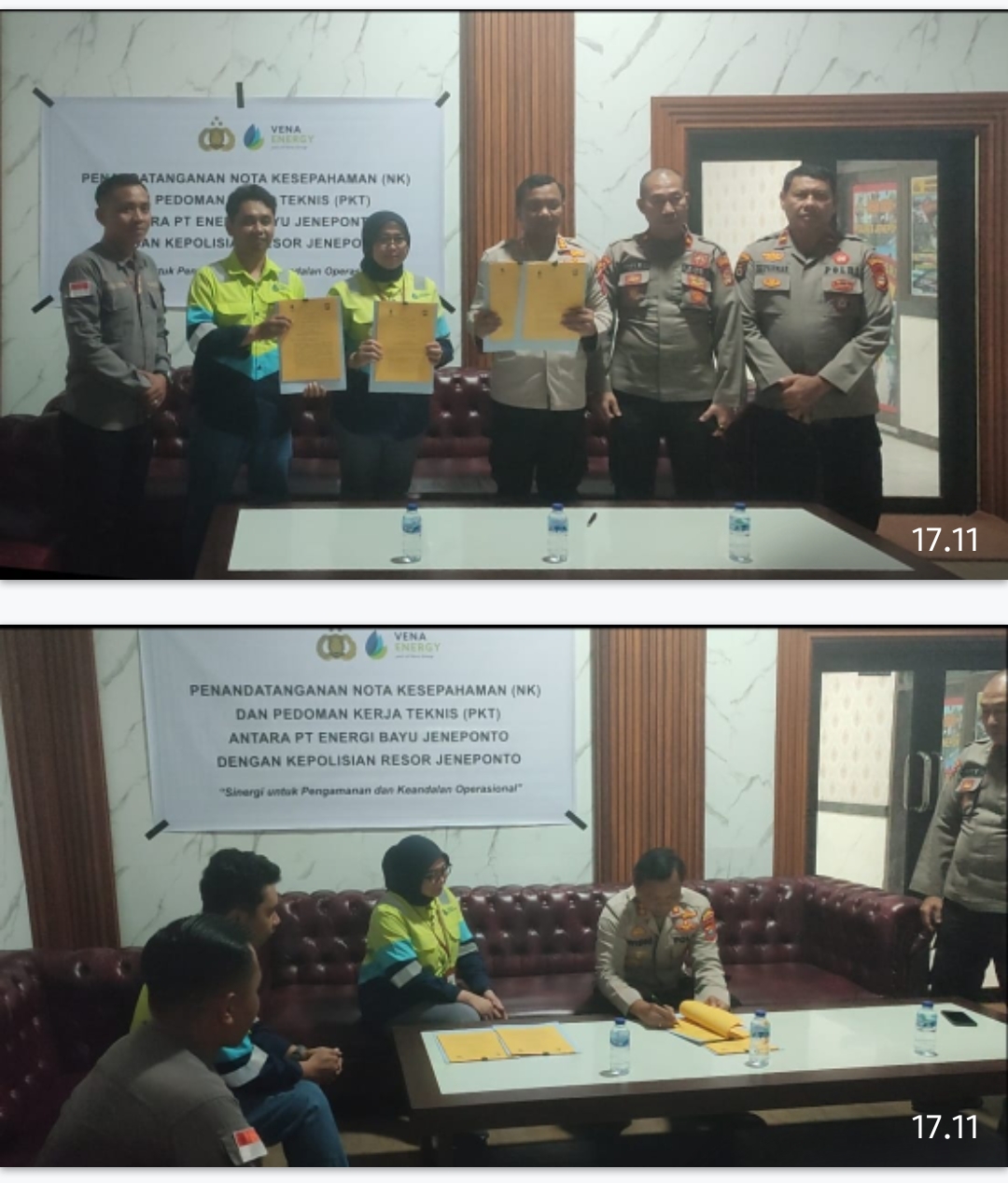 Acara penandatanganan dihadiri pula oleh Kabag Ops Polres Jeneponto Kompol Saharuddin, SH., M.H., Kaur Bin Ops Sat Pamobvit Ipda Suparman, dan Ps. Paur Subbag Kerma Aipda Muh. Asdar SB., SH. Sementara dari PT Energi Bayu Jeneponto, hadir General Administration Associate Arini Sofyan mewakili Direktur Utama, didampingi Community Liaison Officer Wahyunis dan Project Manager Security Kurniawan.