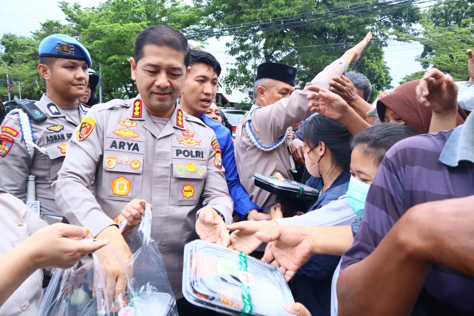 Makassar- Kapolrestabestabes Makassar Kombes Pol Arya Perdana, SH,SIKI,M.Si, turun langsung membagikan takjil kepada warga yang melintas di depan Mako Polrestabes Makassar Jalan Ahmad Yani Kota Makassar, Rabu sore (19/03/2025).