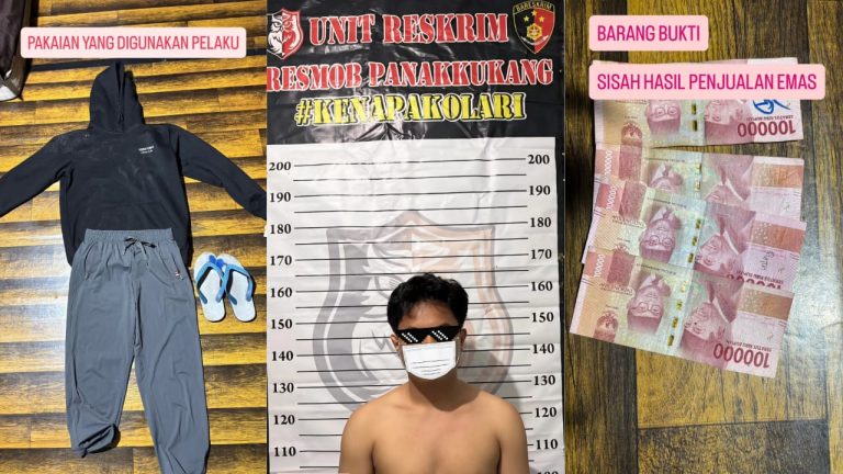 MAKASSAR — Tim Opsnal Resmob Unit Reserse Kriminal (Reskrim) Polsek Panakkukang, Polrestabes Makassar, berhasil meringkus seorang pelaku tindak pidana pencurian dengan kekerasan yang terjadi di Jalan Sukamana 1, Lorong 2, Kelurahan Sinrijala, Kecamatan Panakkukang, Kota Makassar, Sabtu (13/12/2025).