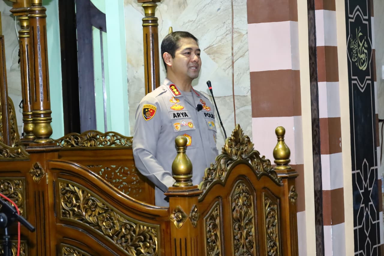 Dalam sambutannya, Kombes Pol Arya Perdana menyampaikan apresiasi atas kesempatan yang diberikan masyarakat untuk kegiatan Safari Ramadhan di Masjid Hajjah Sitti Saerah.