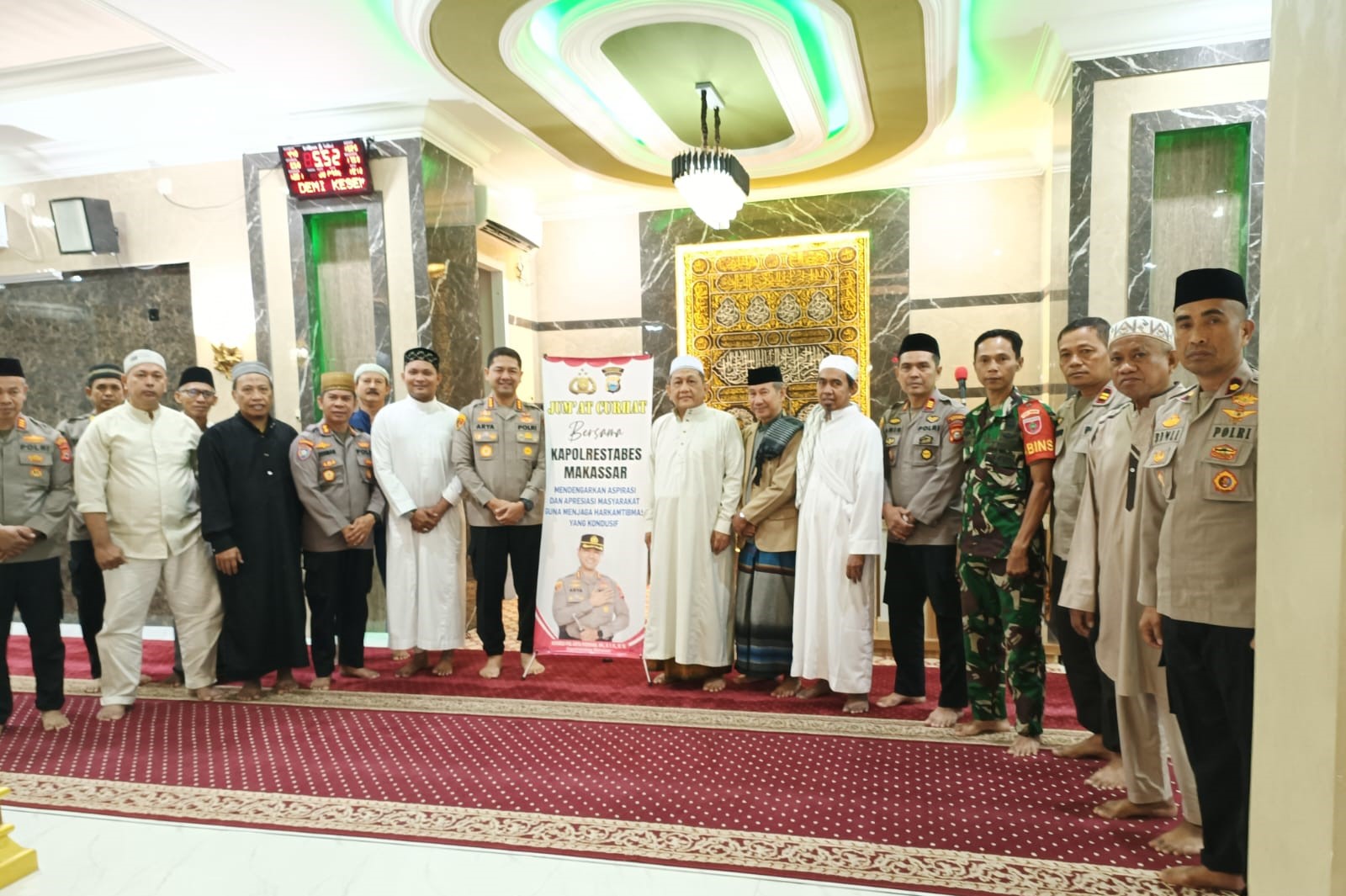 Makassar — Kapolrestabes Makassar, Kombes Pol Arya Perdana, S.H., S.I.K., M.Si., bersama para pejabat utama Polrestabes Makassar didampingi Kapolsek Mariso melaksanakan kegiatan Safari Subuh di Masjid Nahdatussaadah, Jalan Cendrawasih III, Kecamatan Mariso, Kota Makassar, Jumat (30/5/2025).
