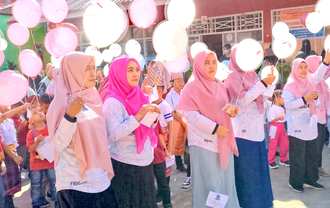 Setelah doa penutup dibacakan, momen haru sekaligus semarak pun terjadi saat para guru dan siswa bersama-sama melepaskan balon gas ke udara. Balon-balon tersebut digantungi kertas kecil berisi tulisan “MPLS SD Ujung Pandang Baru I Tahun 2025”, lengkap dengan nama siswa, kelas, dan cita-cita masing-masing peserta didik baru.