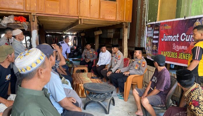 Jeneponto – Waka Polres Jeneponto, Kompol Sahabuddin, S.E., M.AP., melaksanakan Safari Jumat sekaligus kegiatan Jumat Curhat di Masjid Nurul Iman, Dusun Tina’ro, Desa Kareloe, Kecamatan Bontoramba, Kabupaten Jeneponto, pada Jumat (19/09/2025) sekitar pukul 11.30 Wita hingga selesai.