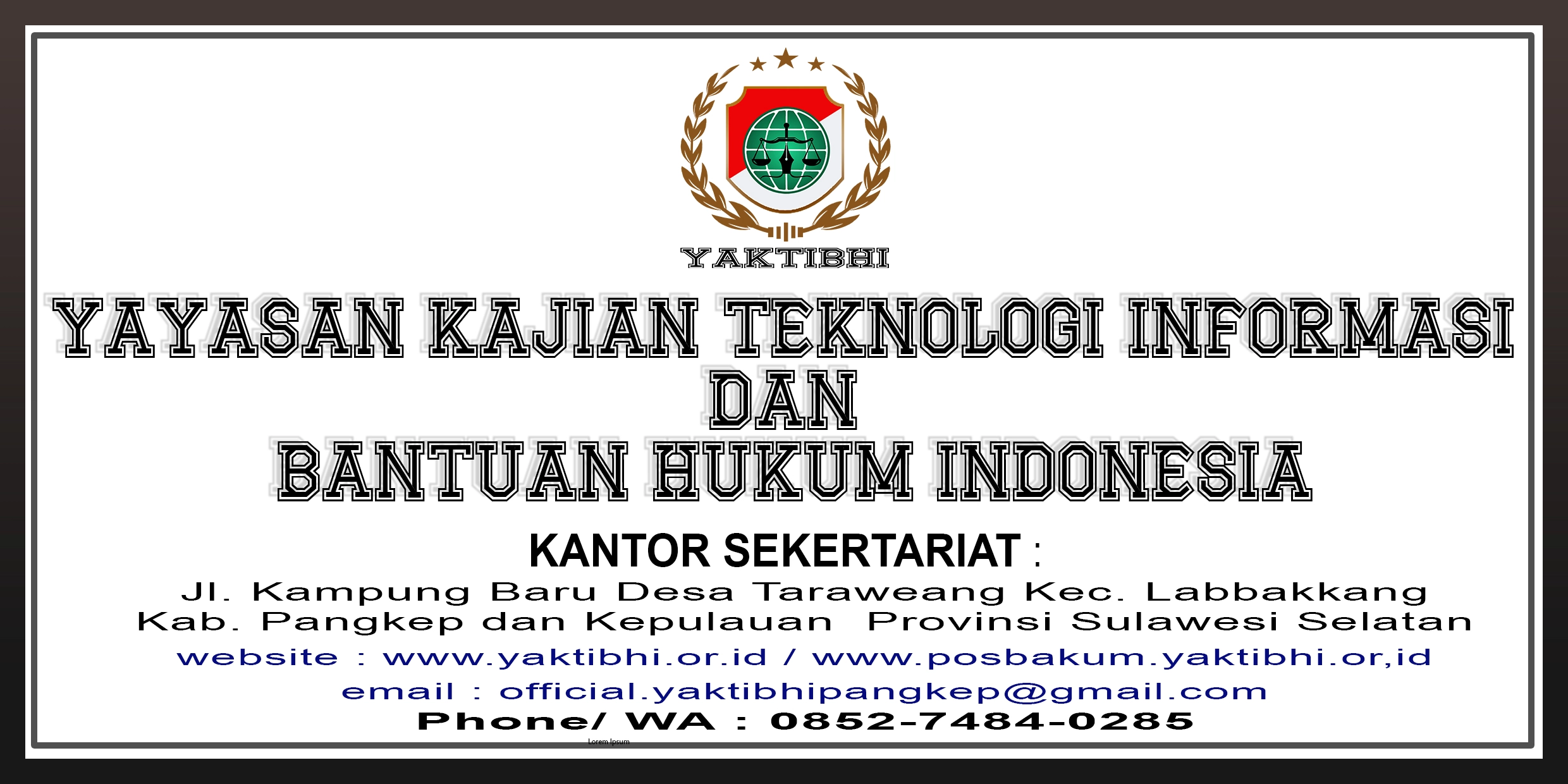 LENSA-RAKYAT.COM, PANGKEP | Yayasan Kajian Teknologi Informasi dan Bantuan Hukum Indonesia (YAKTIBHI)terus memperluas jangkauan pengabdiannya. Kali ini, YAKTIBHI resmi membuka cabang di Kabupaten Pangkep, sebagai bagian dari komitmen untuk memberikan pelayanan hukum bagi masyarakat kurang mampu.