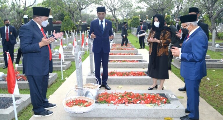 Setelah itu, Presiden Jokowi bersama Wakil Presiden Ma’ruf Amin dengan didampingi oleh sejumlah jajaran terkait melaksanakan prosesi tabur bunga di pusara sejumlah pahlawan. Tabur bunga antara lain dilakukan di makam B.J. Habibie, Ainun Habibie, Taufiq Kiemas, Ani Yudhoyono, Umar Wirahadikusumah, Soedarmono, Adam Malik, para pahlawan revolusi, hingga pahlawan pangkat terendah dan pahlawan tak dikenal.